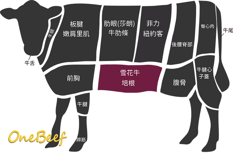 牛胸腹肉又稱牛五花,是由胸肉沿特定肋骨的後緣,除去前胸肉而成,油脂及瘦肉呈現3:7,是帶有油脂的肉品中CP值最高的部位。