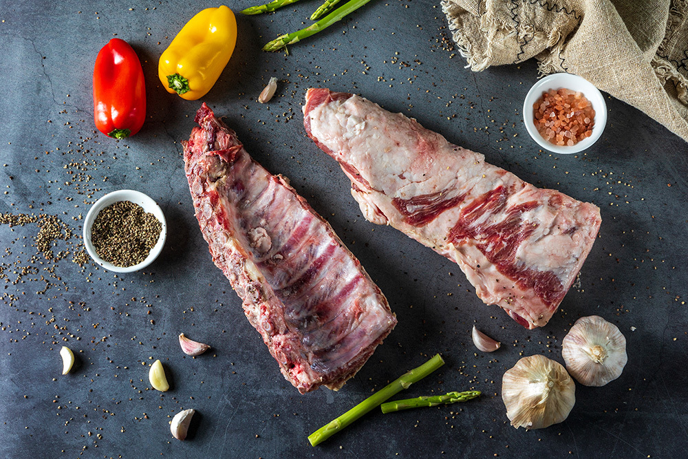取自於腹脅肋骨邊的肉,肉質結實鮮嫩,與台灣豬肋排最大的不同之處在於西班牙伊比利豬肉質細緻且散發出淡淡的迷人榛果香,素有豬肉界勞斯萊斯的美譽。