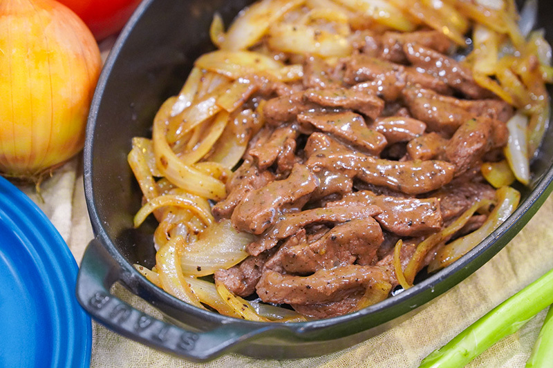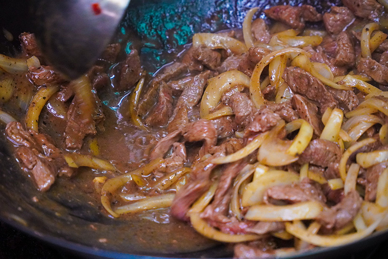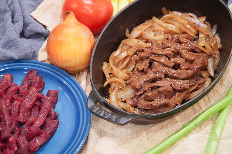 特選澳洲菲力牛肉加以切條及醃製及傳統市場每日新鮮洋蔥,