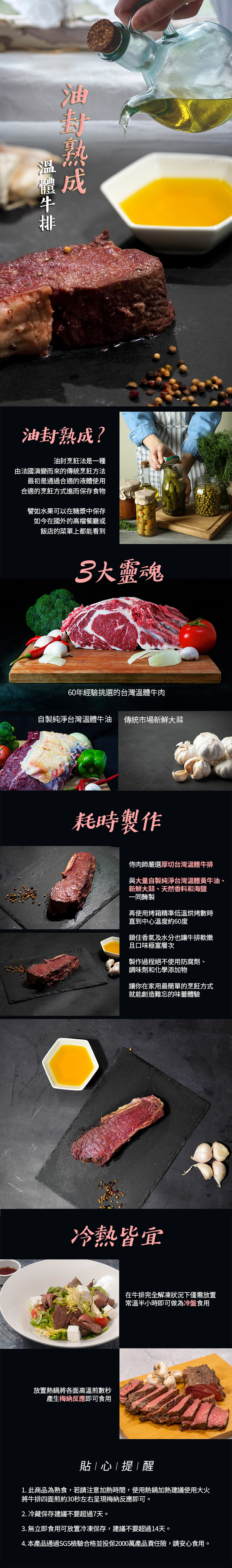 居家或在戶外想品嚐時,在牛排完全解凍狀況下,僅需放置常溫半小時即可做為『冷盤』食用,