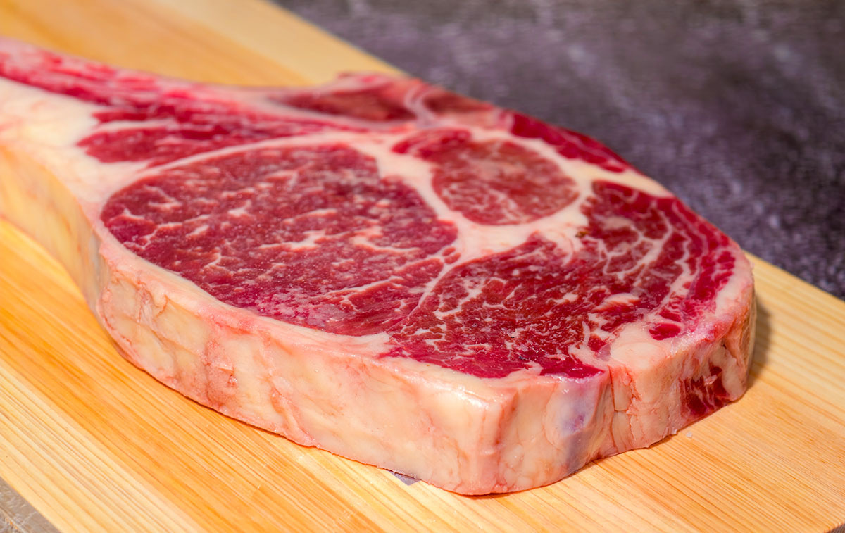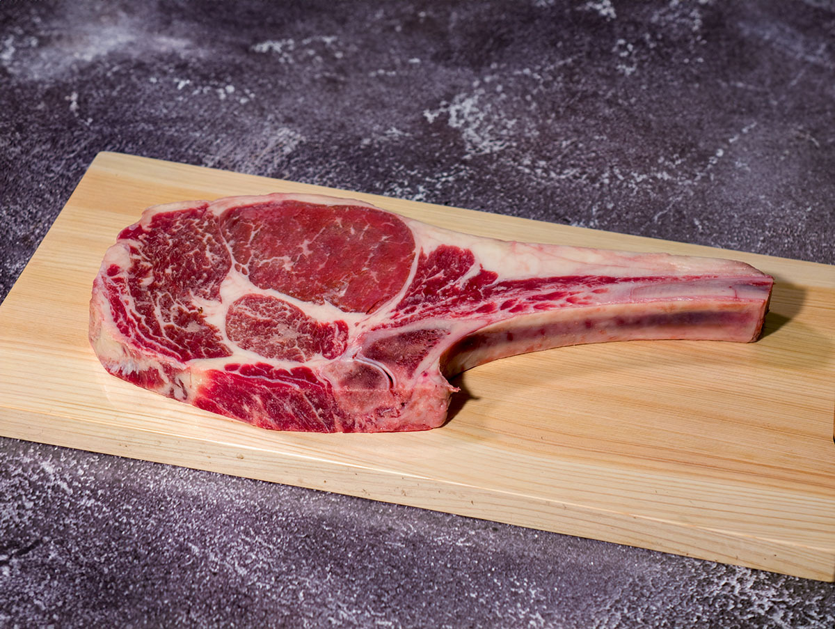 結合肋眼的細膩油花與戰斧骨的豪邁視覺,份量十足、氣勢非凡,